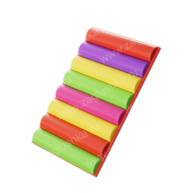 Панель и валики изготовлены из фанеры толщиной 15 мм, несшитого пенополиэтилена (НПЭ) 20мм и ткани ПВХ плотностью 650 г/м2. Мягкая облицовка предотвращает травмирование детей во время игры.