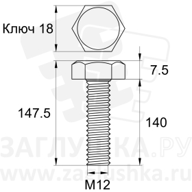 Болт М12х140 из нержавеющей стали c шестигранной головкой. Стандарт DIN 933.