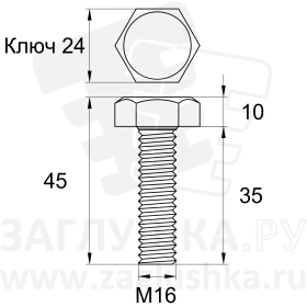 Болт М16x35 из нержавеющей стали. Стандарт DIN933.