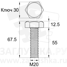 Болт М20x55 из нержавеющей стали. Стандарт DIN933.