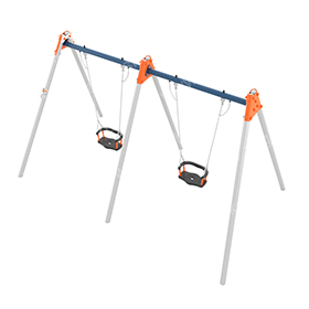 Двойные качели на опорных металлических стойках с сиденьями Forto со спинкой