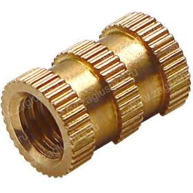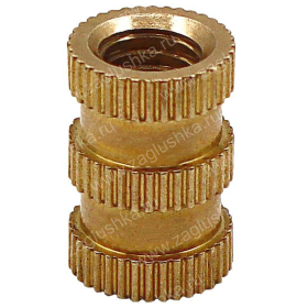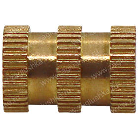 Применяется в качестве закладной детали при производстве литых изделий из пластика и других материалов. Hасечки и проточка на боковой поверхности надежно удерживают втулку в изделии и препятствуют ее смещению и проворачиванию.