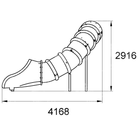 Тоннельная поворотная горка. Имеет поворот в правую сторону. Размер — 4168х2986х2916 мм. Высота стартового участка — 2037 мм.