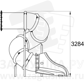 Тоннельная пластиковая горка в форме спирали. Размер — 3375х2341х3284 мм. Высота стартового участка — 2500 мм.