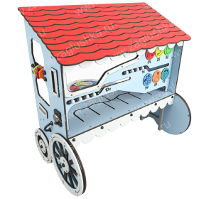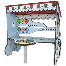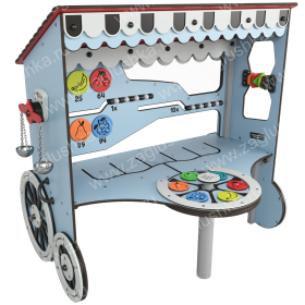Панель имитирует игру в магазин. Выполнена в форме лавки на колесах.