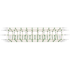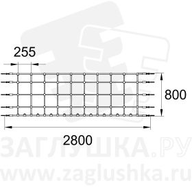 Сетка выполнена из армированного шестипрядного каната (арт. TA8-0160-001), пластиковых крестообразных (арт. ЯЛ16КС) и Т-образных (арт. С09-16КС) соединителей, обжимных втулок (арт. A16-E41, арт. B1C06).