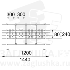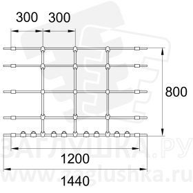 Выполнен из армированного шестипрядного каната (арт. TA8-0160-001), пластиковых крестообразных (арт. ЯЛ16КС) и Т-образных (арт. С09-16КС) соединителей, обжимных втулок (арт. A16-E41, арт. B1C06).