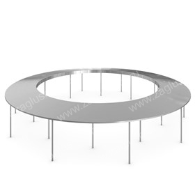 Конструкция представляет собой навес круглой формы на опорных стойках. Крыша облицована листами из зеркальной нержавеющей стали AISI 304 с двух сторон.