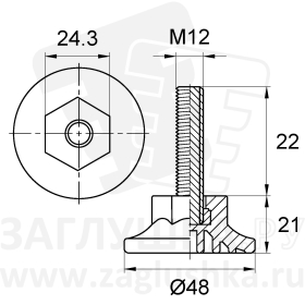 Опора резьбовая М12х25 с круглым основанием 48 мм.