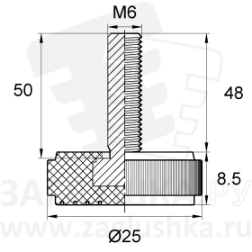 Опора резьбовая с металлическим оцинкованным резьбовым стержнем М6х48 и круглым пластиковым основанием D25 мм. Используется в основном для регулировки конструкции по высоте. Специальные насечки "антискольжения" по периметру основания опоры позволяют удобно и легко производить регулировку руками. Дополнительно рекомендуем к резьбовой опоре приобретать заглушку с резьбой М6. Размер заглушки подбирается исходя из диаметра или профиля используемой трубы.