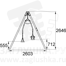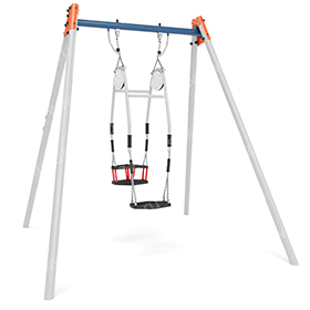 Состоят из металлических опорных стоек и перекладины, парного сиденья Forto и цепных подвесов.