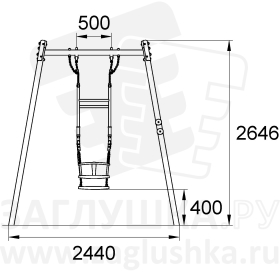 Качели на опорных металлических стойках с парным сиденьем Forto. Размер - 2440х2603х2646 мм.