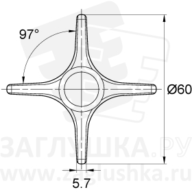 Ручка-фиксатор с крестообразной рукояткой диаметром 60 мм и резьбой М10х28 мм