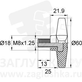 Ручка-фиксатор с крестообразной рукояткой диаметром 60 мм и стержнем М8х13 мм