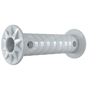 Ручка-втулка для каната диаметром 16 мм. Длина изделия - 131 мм. Изделие используется в различных игровых конструкциях в качестве уступа для ног или ручки. Место хвата рифлёное, что препятствует скольжению.