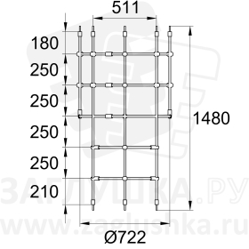 По краям тоннеля отрезки каната обжаты втулками (арт. A16-BK) с резьбовыми шпильками М10х55 (DIN975-M10), с помощью которых в дальнейшем изделие крепится к другим поверхностям.