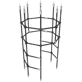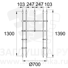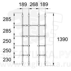 По краям тоннеля отрезки каната обжаты втулками (арт. A16-B) с резьбовыми шпильками М10х62 (DIN975-M10), с помощью которых в дальнейшем изделие крепится к другим поверхностям.