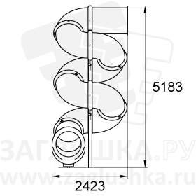 Тоннельная спиральная горка. Имеет поворот в левую сторону. Размер — 2423х3667х5183 мм. Высота стартового участка — 4405 мм.