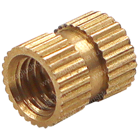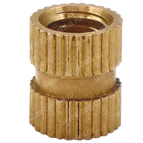 Применяется в качестве закладной детали при производстве литых изделий из пластика и других материалов. Hасечки и проточка на боковой поверхности надежно удерживают втулку в изделии и препятствуют ее смещению и проворачиванию.