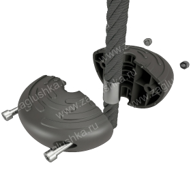 Состоит из 2-х элементов, которые при установке на канат соединяются при помощи винтов DIN912-M8x70 и гаек DIN985-M8. На канате уступ зафиксирован обжимной втулкой (арт. A22-E40).