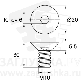 Винт M10x30 с потайной головкой и шестигранным углублением под ключ. Изделие изготовлено из нержавеющей стали. Стандарт DIN7991.