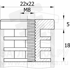 Заглушка пластиковая внутреняя с резьбой М8 для труб квадратного сечения 22х22 мм